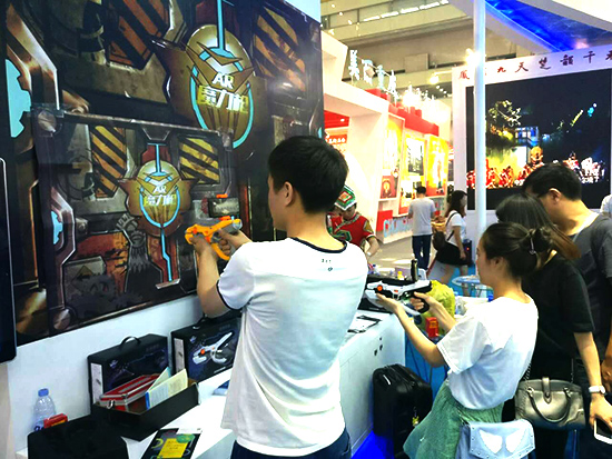 现场人员试玩AR魔力枪